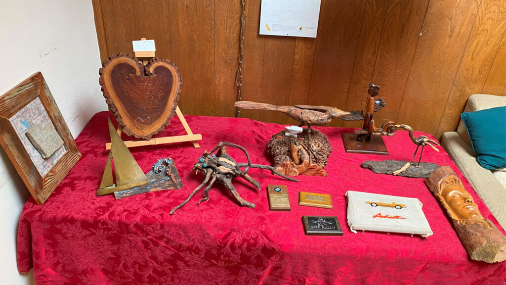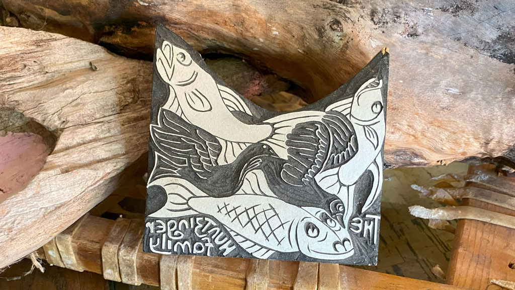 Alan Huntzinger’s photos with CarolWooden spoon carved by Alan HuntzingerFound wood carvings by Alan HuntzingerCove lighting carved by Alan HuntzingerLeather case made by Alan HuntzingerPlock printing: fish by Alan HuntzingerGarden flowers by Alan HuntzingerAlan’s motorcycle with sidecar