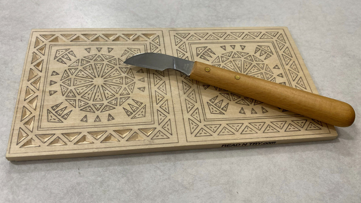 Roman designed and shared a chip carving pattern for decorating strops. Learn more about his strop-making expertise and download the free PDF chip carving pattern in his article at READ N TRY.