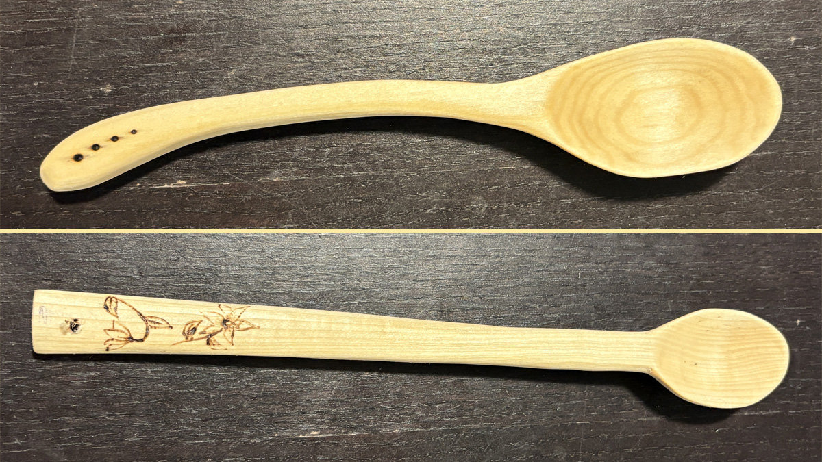 Jane began carving only a few months ago, yet she’s already mastering spoon carving. Each heart-melting spoon she carves improves on the last, and she loves gifting them to family and friends.