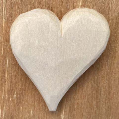 Roman carved a set of wooden hearts to use as examples for our January “Whittling Hearts” workshop. He often embeds magnets in his pieces, turning them into unique fridge magnets.