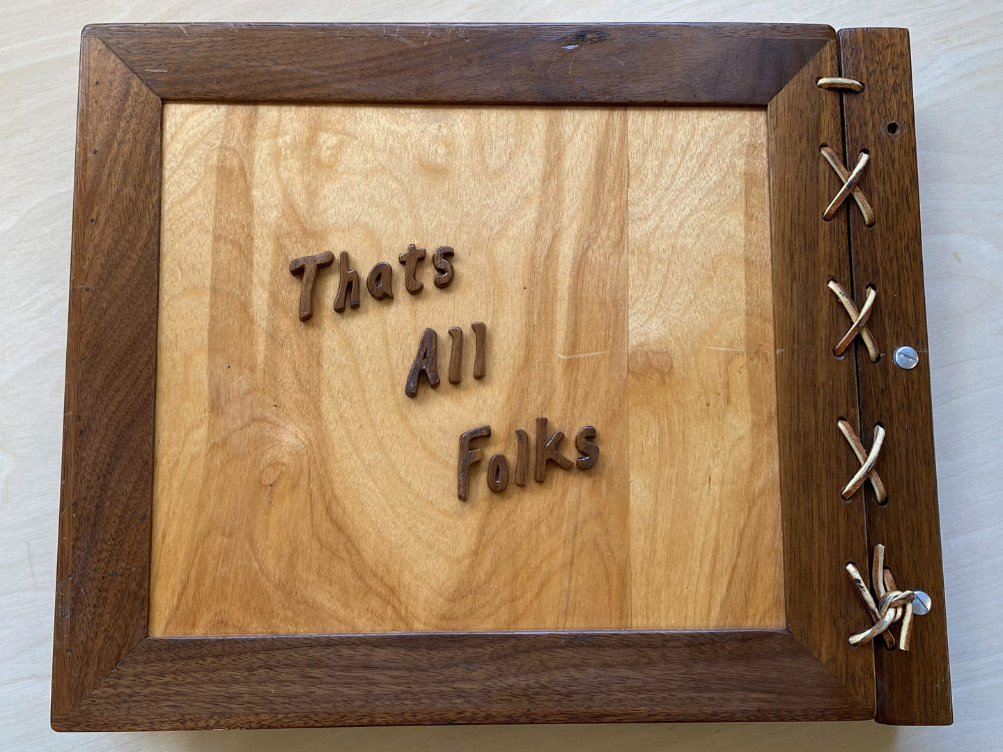 The club has this custom-made album, carved in the 1970s, assembled between 1978 and 1990. It contains dozens of photos of carvers, their projects, and cutouts from newspapers and magazines. The album size is 15 1/4 x 12 1/4″; height is 1 1/2″.