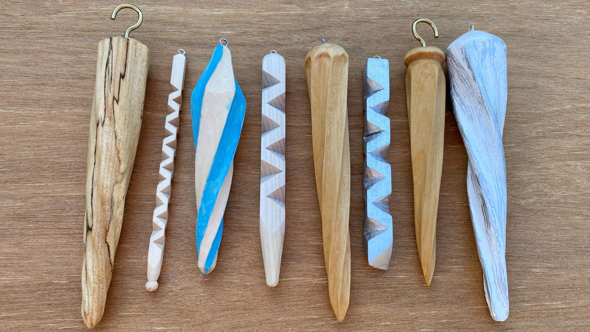 Roman also showed how to add a simple eyelet using a piece of wire and a handheld drill, turning each carved piece into a ready-to-hang holiday ornament. The result? A sparkling collection of icicle-shaped carvings that look perfect on any tree or mantel.